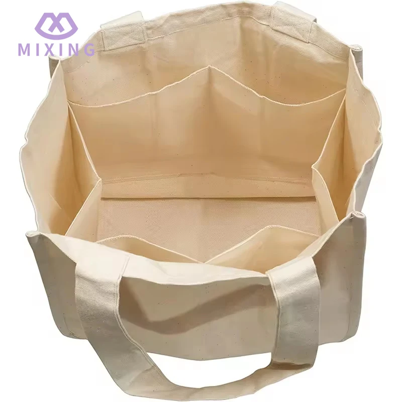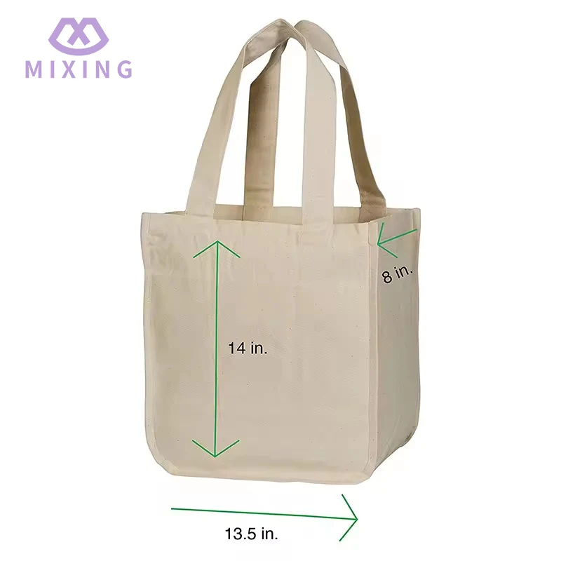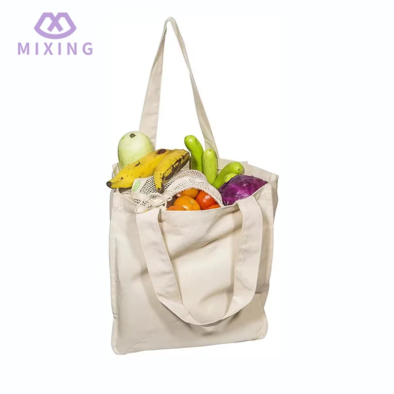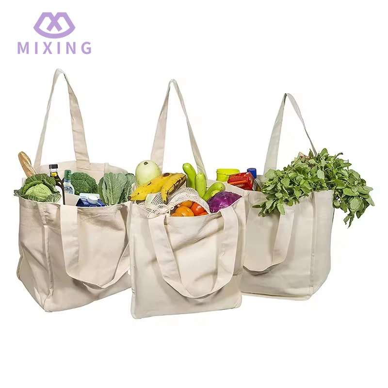 Canvas Grocery Shopping Bags från Mixing är gjorda av canvas som känns tjock och texturerad, de blir inte lika mjuka och smuliga som tunt tyg. De kan behålla en krispig form när de är fyllda med saker och kommer inte att deformera föremålen inuti, även när de är fyllda med tyngre saker, kan påsens kropp hålla den stadigt.