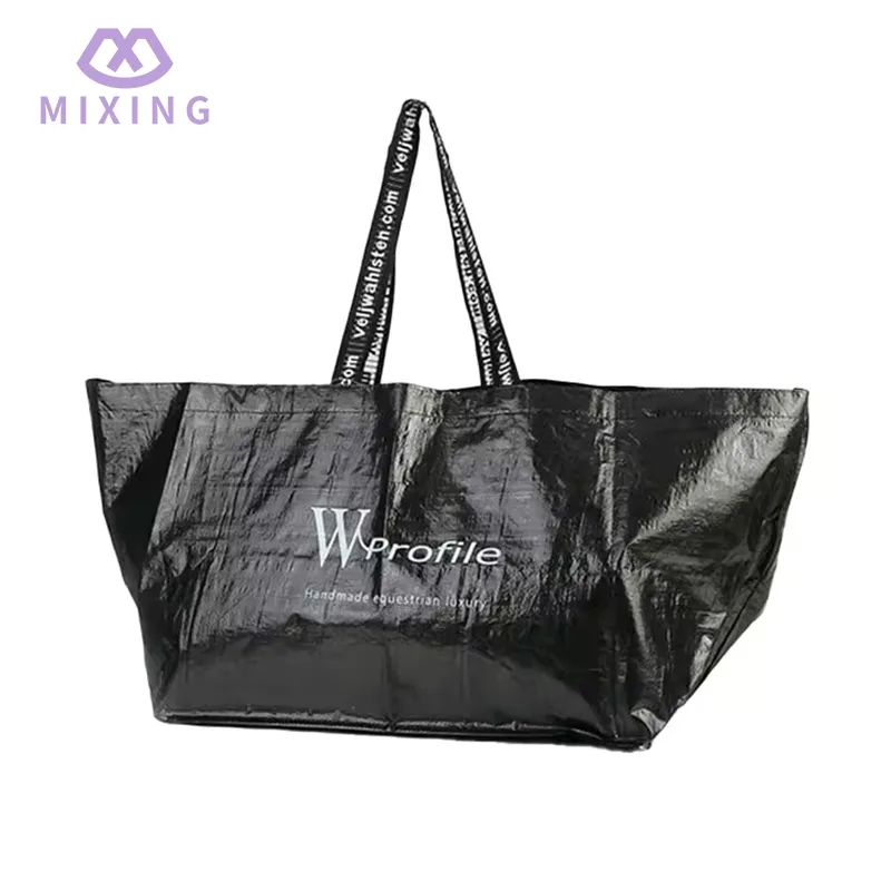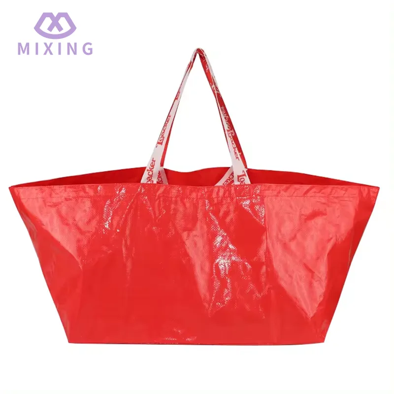 China Extra Large shoppingväska av polypropen från Mixing är gjord med en bredare vävprocess, den har gott om invändigt utrymme. Även om du lägger en hel låda med tvättmedel, tio pund ris och mjöl eller flera portioner färsk mat, kan det lätt rymmas och är inte benäget att deformeras.