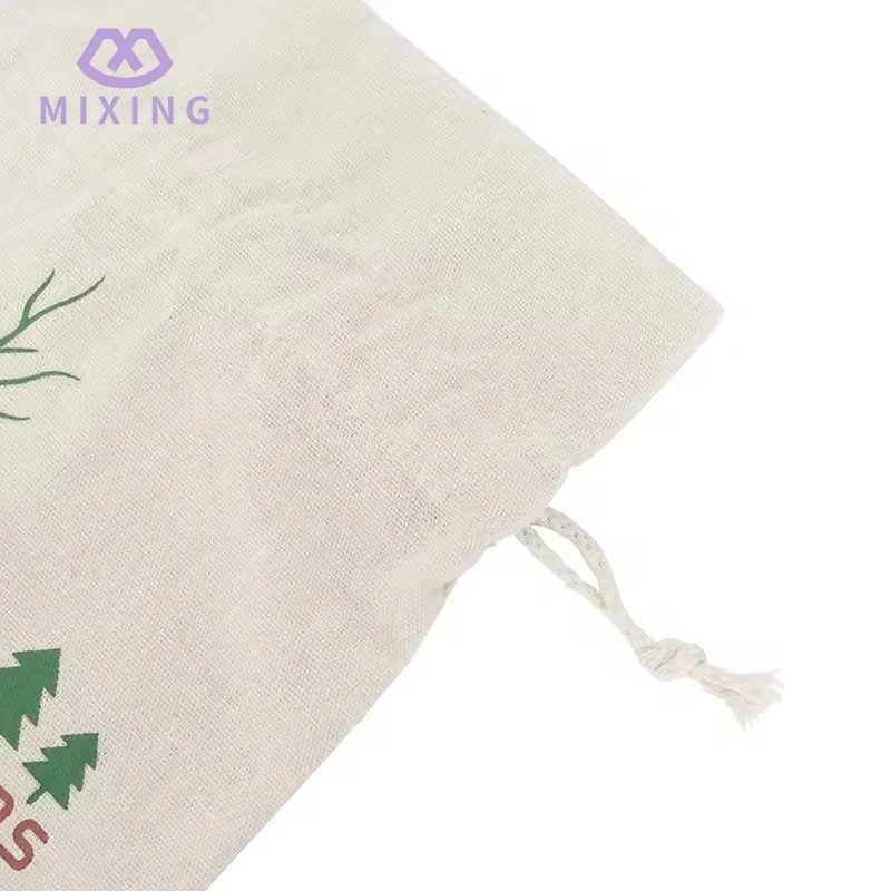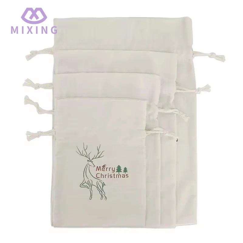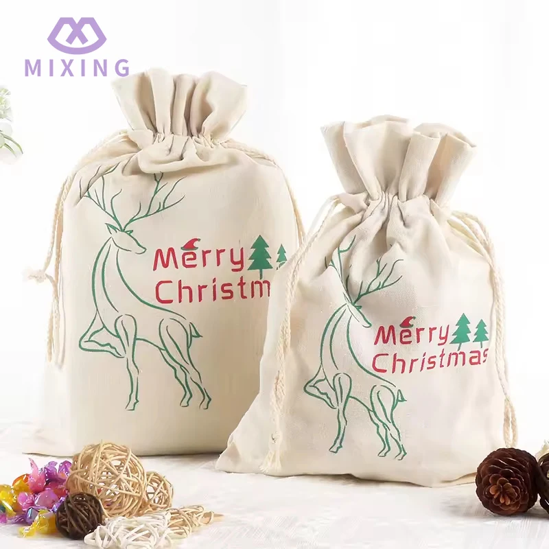 Tyget av kvalitetspåsen Large Cotton Christmas Drawstring Pouch tillverkad av Mixing har genomgått förkrympningsbehandling. Vid beröring kan du känna bomullstygets tjocka struktur och fina struktur. Det är inte benäget att deformeras som tunt bomullstyg, och det är inte heller styvt på grund av materialets hårdhet. Den kan naturligtvis bibehålla en regelbunden form efter lastning av föremål. Påskroppen är tryckt med rika jultemamönster, som är ljusa i färgen och smälter väl in i tyget, vilket undviker den billiga känslan av mönstren som flyter på ytan