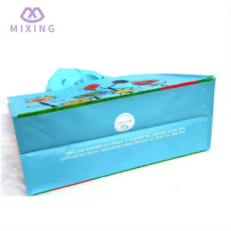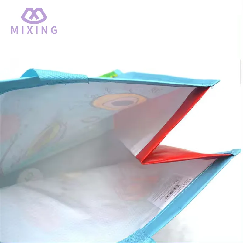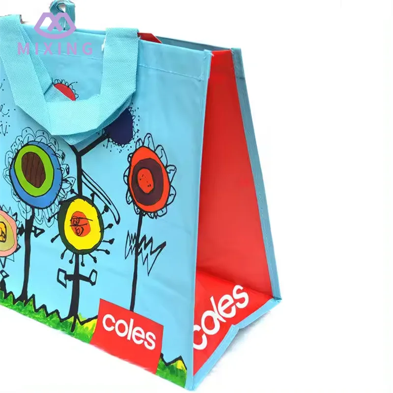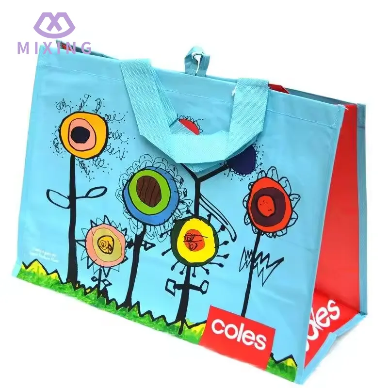 China Recyclable PP Woven Shopping Bag som tillverkas av Mixing är gjord med en tät slätväv, den känns solid men inte styv, har en viss textur i handen, är inte lätt och saknar stöd och är inte lätt att deformera när man bär saker.