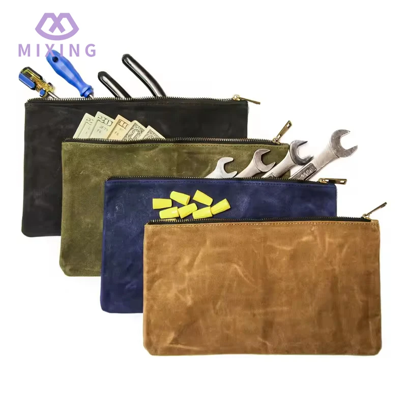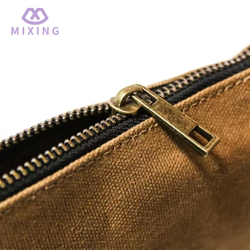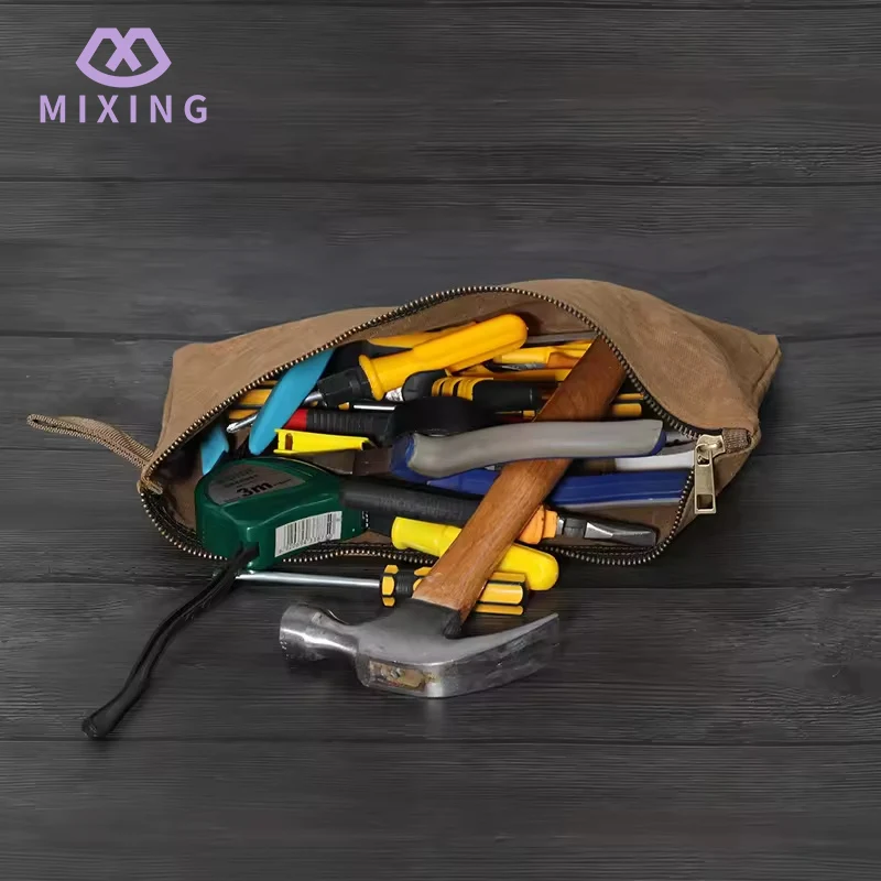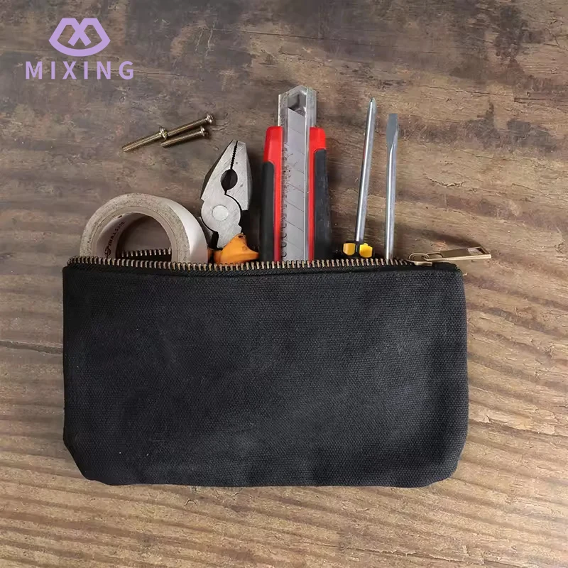 Mixings China Waxed Canvas Tool Pouch används huvudsakligen för att hålla små verktyg som vanligtvis används i det dagliga livet, påskroppen har en dragkedja som öppnar och stängs. Dragkedjan är en slitstark metalltyp, vid dragning och stängning är den väldigt smidig och kommer inte att fastna på grund av lätt kollision av verktyget, när dragkedjan är stängd kan påsöppningen tätas relativt tätt. Oroa dig inte för att verktygen skakar och faller inuti.